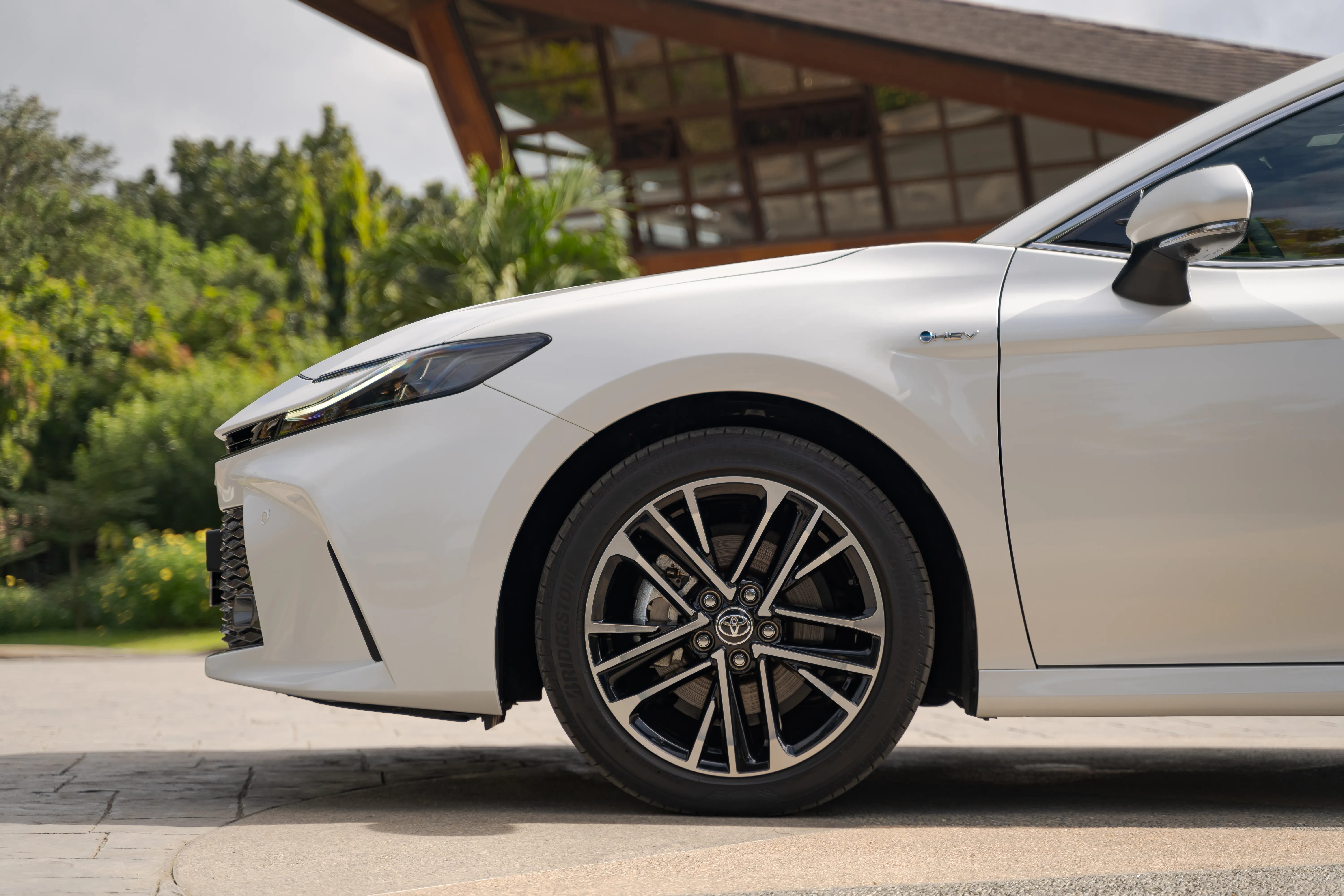 CAMRY 2.5 V HEV ElectrifiedSRP: ₱2,657,000Color, Dimension and WeightAvailable Colors: Platinum White Pearl MicaBlack MicaPrecious MetalEngine and TransmissionEngine Type: A25A-FXS: In-Line 4, 16-valve DOHC,Chain Drive, HybridEngine Displacement (cc): 2487Maximum Torque (NM/RPM): 221/3600-5200Fuel Type: GasolineFuel Capacity (L): 50ChassisTires: 45 R18 AlloyWheels (size): 235Suspension: F: MacPherson Strut | R: Multi-LinkSafety and SecuritySRS Airbags: Driver, Driver Knee, Passenger, Side, Curtain Shield (7)Anti-Lock Brake System (ABS) : WithVehicle Stability Control (VSC) : WithFunctionKeyless Entry: WithIgnition System: Push Start